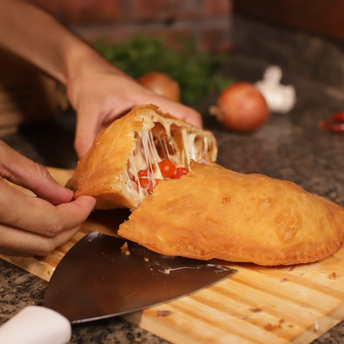 Molho da casa + Mussarela + Palmito Pupunha Picado + Creamchesse + Requeijão