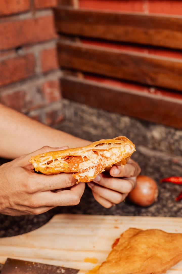 Calabresa em Rodelas + Cebola Roxa + Mussarela + Molho da casa